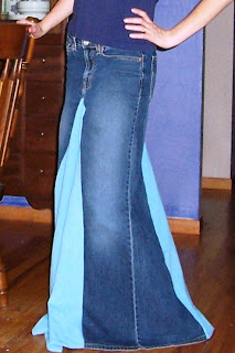 I will be needing more long skirts next school year (more on that later), and I wanted to be sure I made them--I am trying to stay true to my Wardrobe Refashion commitment and I don't have the money to spend on new clothes, since I won't have a paycheck next month. So.... here's my first "new" skirt: